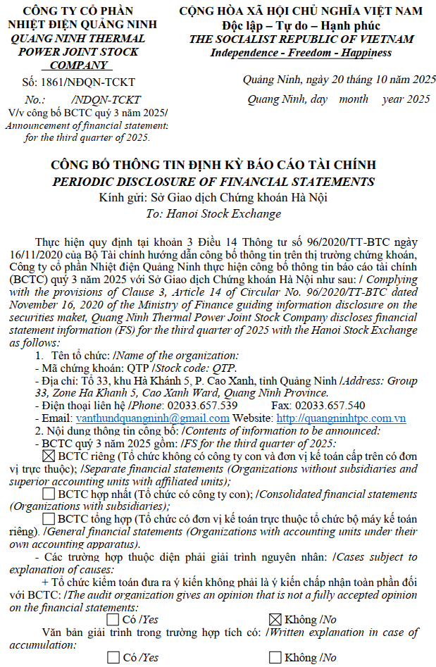 Báo cáo tài chính Bán niên 2025 sau soát xét