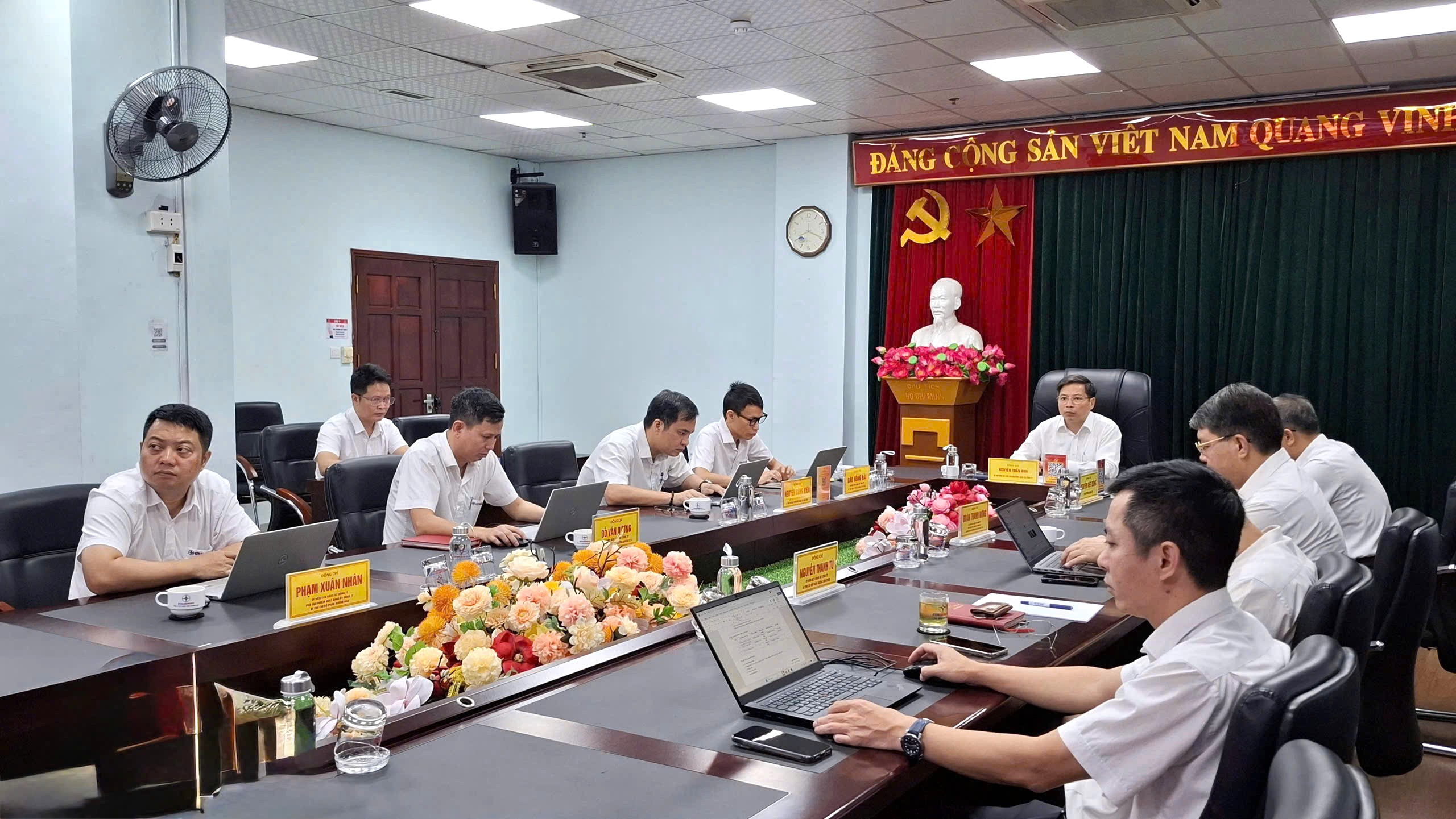 cùng các đại biểu tham dự hội nghị tại điểm cầu Phòng 214 Đảng bộ Công ty