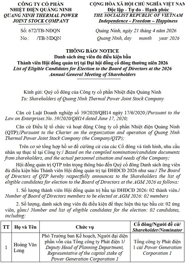 Danh sách ứng viên HĐQT 2026 Hồ sơ ứng cử TV HĐQT - ông Đoàn Thanh Hưng Hồ sơ ứng cử TV HĐQT - ông Hoàng Văn Long