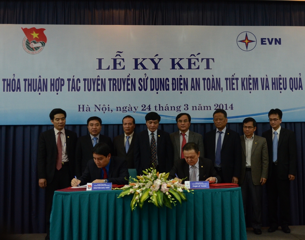EVN và Trung ương đoàn TNCS HCM ký thỏa thuận hợp tác tuyên truyền, vận động sử dụng điện an toàn, tiết kiệm và hiệu quả giai đoạn 2014 - 2015. Ảnh: Phan Trang