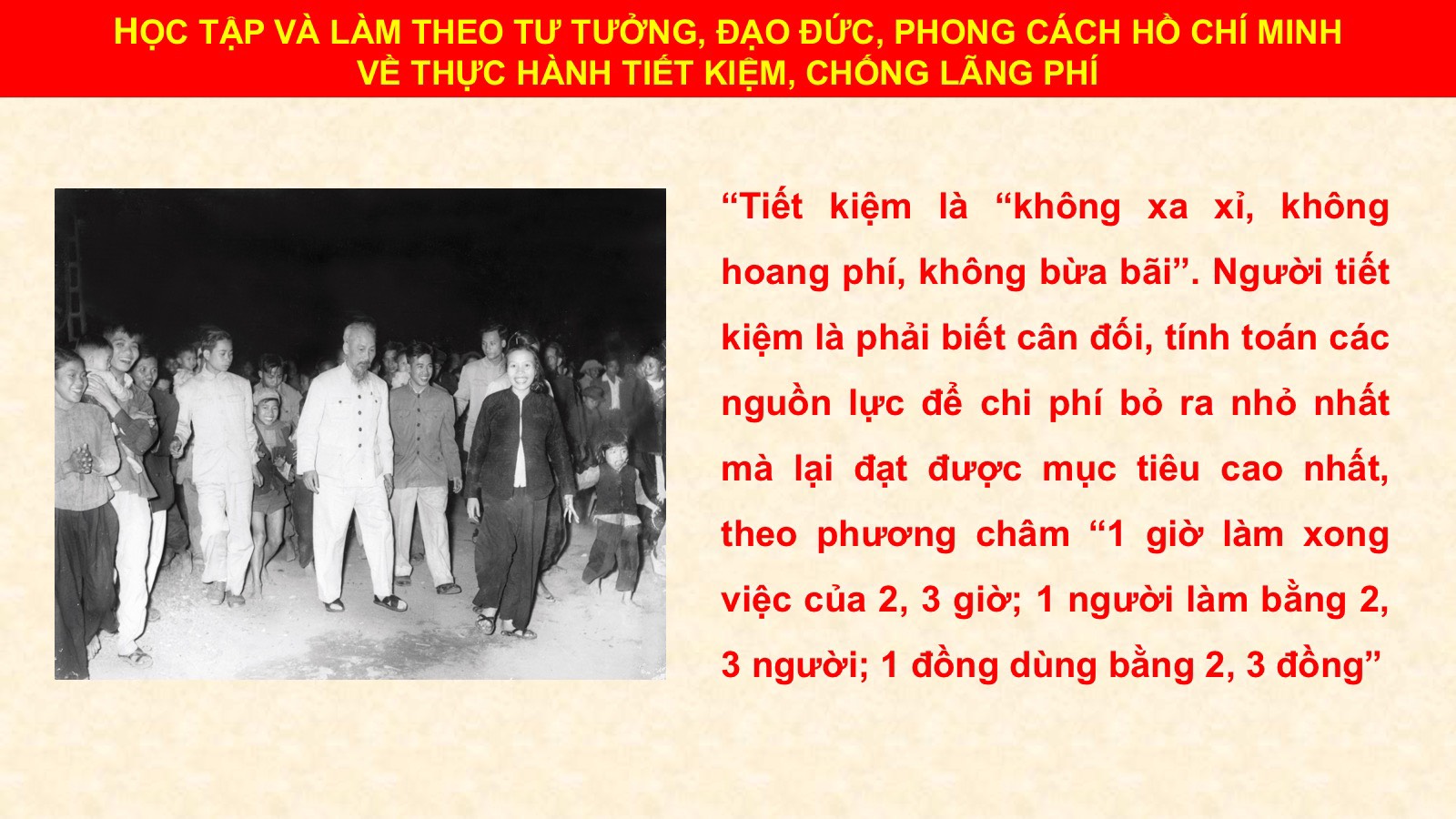 Học tập và làm theo tư tưởng, đạo đức, phong cách Hồ Chí Minh về thực hành tiết kiệm, chống lãng phí