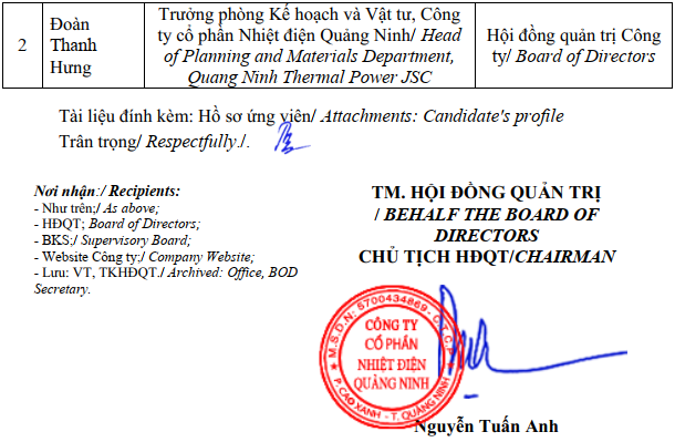 Danh sách ứng viên HĐQT 2026 Hồ sơ ứng cử TV HĐQT - ông Đoàn Thanh Hưng Hồ sơ ứng cử TV HĐQT - ông Hoàng Văn Long
