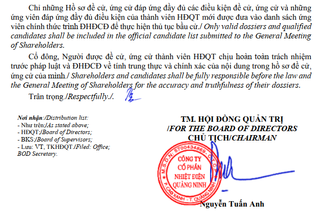 Thông báo về việc đề cử, ứng cử thành viên Hội đồng quản trị